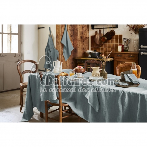 Apportez fraîcheur, luminosité et élégance naturelle à votre grande table avec la nappe rectangle 170 x 350 cm en lin lavé SOLINE – couleur Azur. Confectionnée dans un lin français cultivé en Normandie, elle se distingue par sa qualité exceptionnelle, son toucher doux et son aspect légèrement froissé, typique du lin lavé haut de gamme.