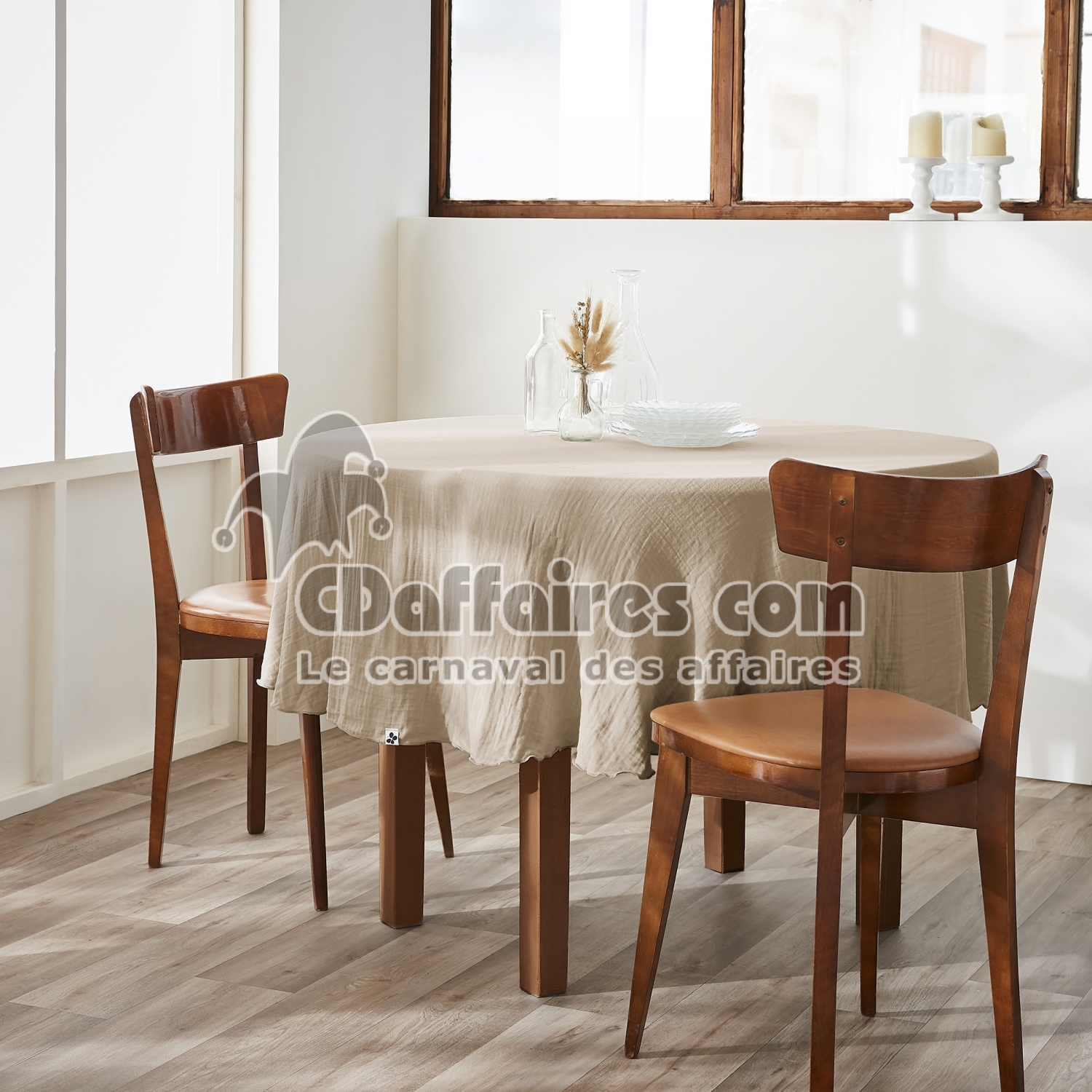 Avec son diamètre de 180 cm, la nappe Gaïa s’adapte parfaitement aux tables rondes de 4 à 6 personnes.
