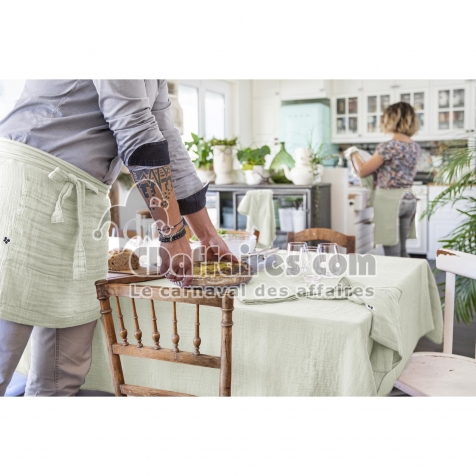Nappes > Apportez une touche de raffinement et de modernité naturelle à votre table avec la nappe rectangulaire Gaïa Vert d'eau. Réalisée en double gaze de coton,. Taille 150 x 350 cm.