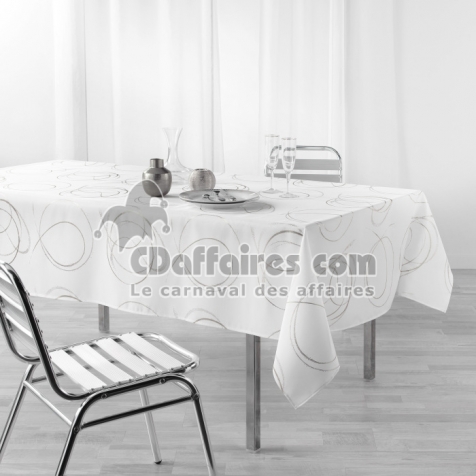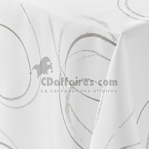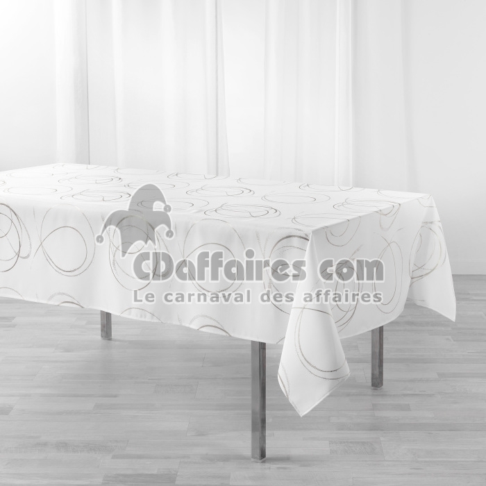 Nappes > Mettez une touche de décoration à votre table avec notre gamme de nappe antitache Taille : 150 x 300 cm Modèle : Bully blanc et argent Le plus :Nappe en. Taille 150 x 300 cm.
