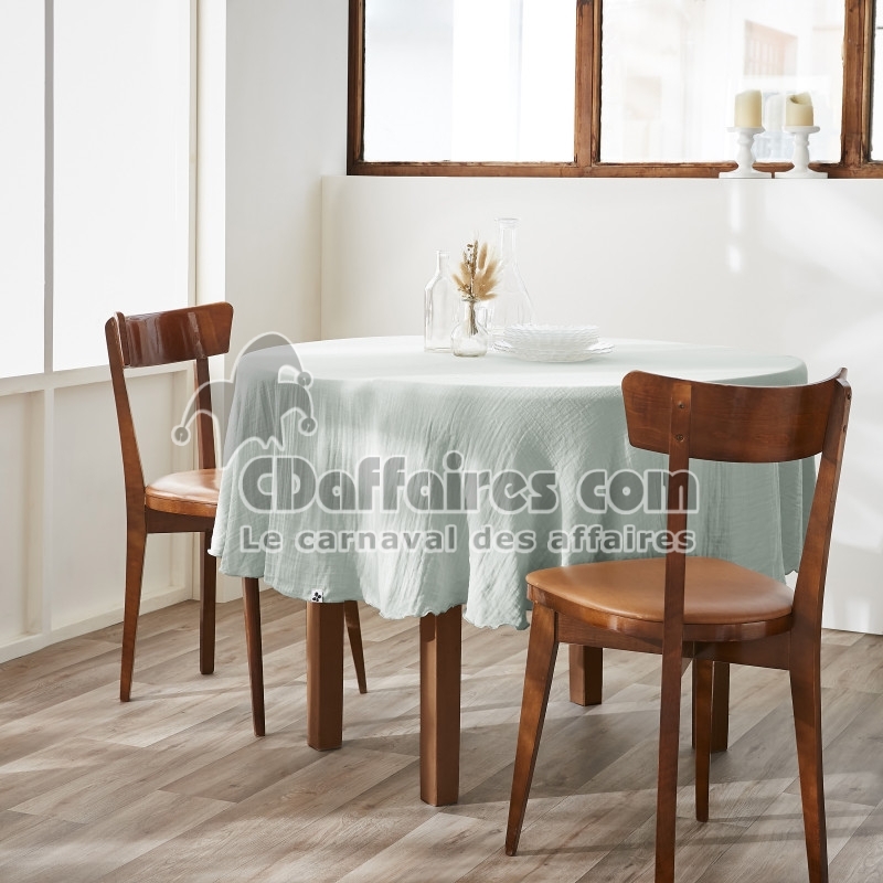 Nappe ronde (0) 180 cm gaze de coton unie Gaïa Eucalyptus - CDAffaires