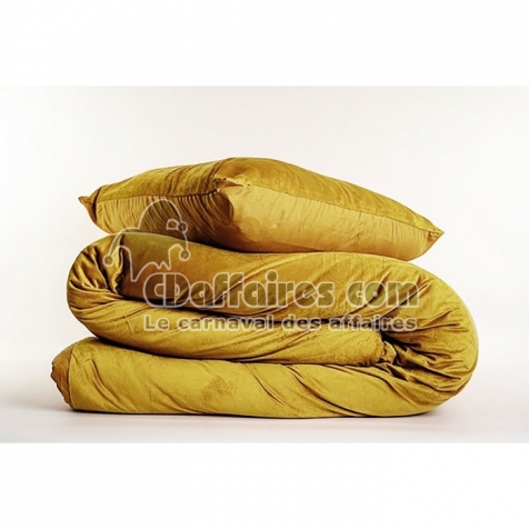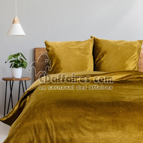 Parures de lit > Plongez dans une atmosphère cocooning avec la parure Velina ocre. Confectionnée dans un velours doux et soyeux, cette housse de couette transforme votre. Taille 240 x 220 cm.