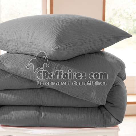 Parures de lit > Apportez douceur et authenticité à votre chambre avec la parure de lit Avy Ardoise. Confectionnée en gaze de coton , cette housse de couette 140 x 200 cm et. Taille 140 x 200 cm.