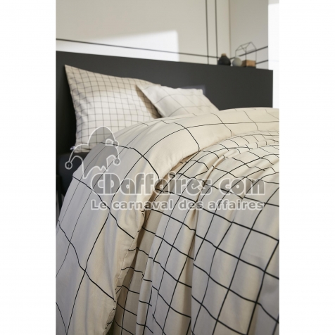 Parures de lit > Alliez modernité et élégance avec la parure de lit Carrie Pampa, au design graphique et minimaliste. Ses fines lignes noires dessinant un quadrillage sobre. Taille 260 x 240 cm.