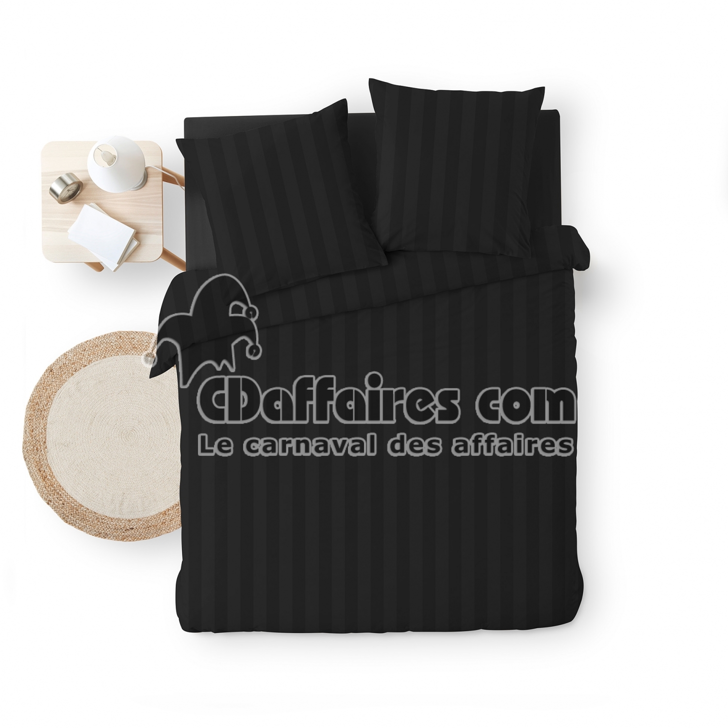 Parures de lit > Apportez une touche d’élégance absolue à votre chambre avec la parure de lit CLÉO Noir. Chic et intemporelle, sa teinte noire met en valeur les lignes. Taille 240 x 220 cm.