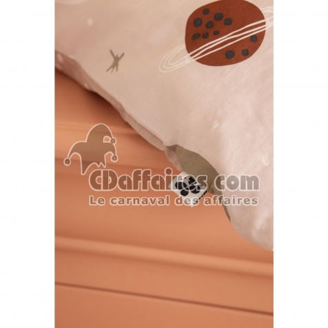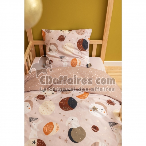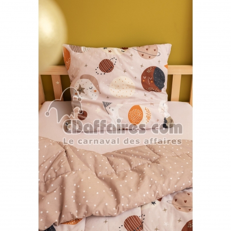 Parures de lit > La parure SKY DREAM apporte une ambiance douce et rêveuse à la chambre des enfants. Son motif composé de planètes, étoiles et petits animaux crée un. Taille 200 x 200 cm.