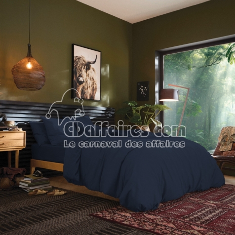 Parures de lit > Apportez une ambiance élégante, profonde et apaisante à votre chambre avec cette housse de couette 1 place en coton 57 fils, proposée dans un coloris bleu. Taille 140 x 200 cm.