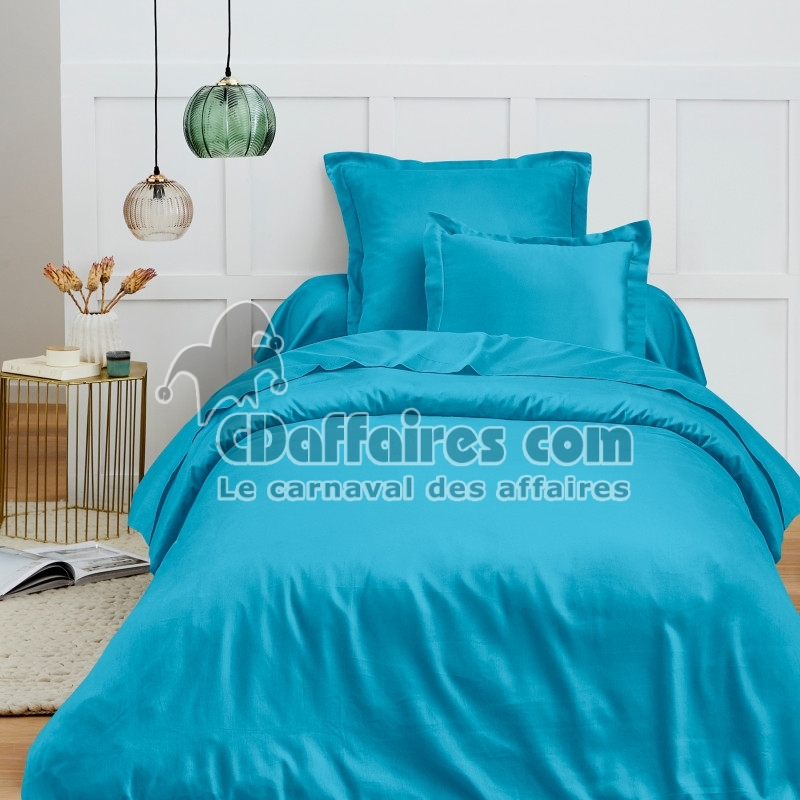 Parures de lit > Apportez une touche fraîche, lumineuse et moderne à votre chambre avec cette housse de couette 1 place en coton 57 fils, proposée dans un coloris cyan. Taille 140 x 200 cm.