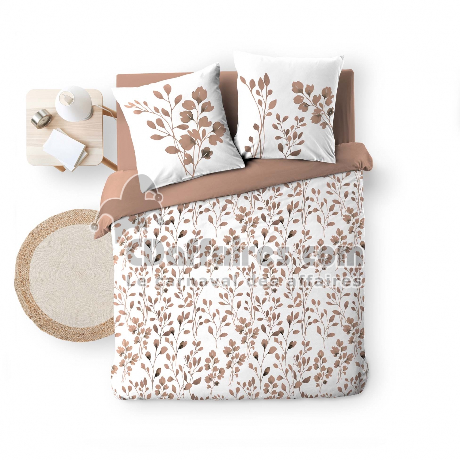 Parures de lit > La housse de couette MAIWENA Mocha habille la chambre d’une atmosphère chaleureuse et naturelle grâce à son imprimé végétal allover délicat. Ses
