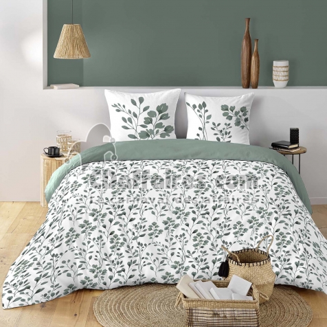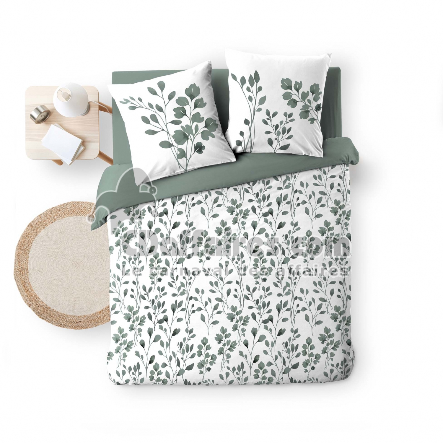 Parures de lit > La housse de couette MAIWENA Sauge apporte une touche de fraîcheur et de sérénité à la chambre grâce à son imprimé végétal allover délicat. Ses