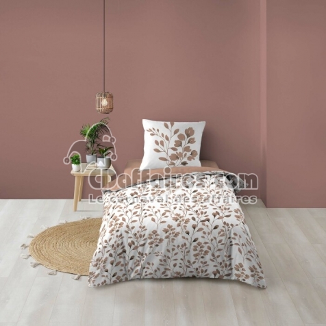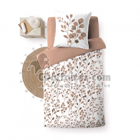 Parures de lit > Transformez votre espace nuit en un cocon naturel et chaleureux avec la housse de couette MAIWEN Mocha et sa taie d’oreiller assortie. Son motif végétal. Taille 140 x 200 cm.