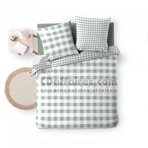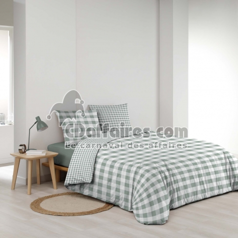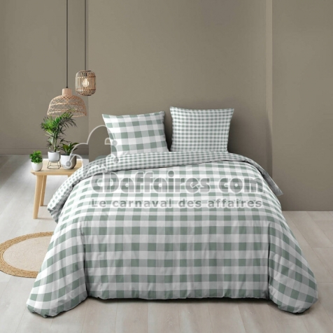 Parures de lit > La housse de couette VICTOIRE Sauge séduit par son motif à carreaux intemporel et son coloris sauge doux et apaisant. Son imprimé réversible permet de. Taille 240 x 220 cm.