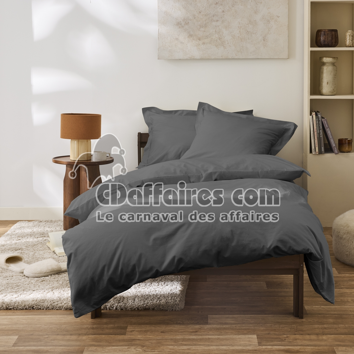 Housse de couette 140 x 200 cm Grand Hôtel Ardoise — Percale de coton peigné 80 fils/cm² - CDAffaires