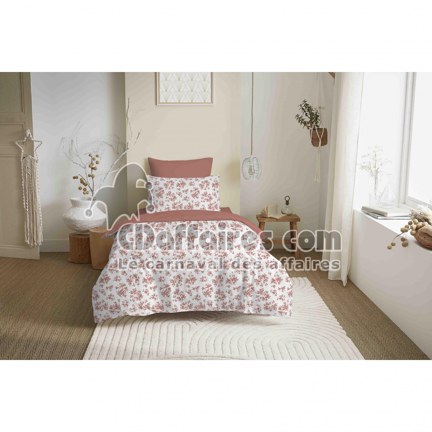 Parures de lit > Apportez une touche de douceur et de chaleur à votre chambre avec la parure LOUISON Abricot. Son délicat motif floral dans de jolies nuances abricot crée. Taille 140 x 200 cm.