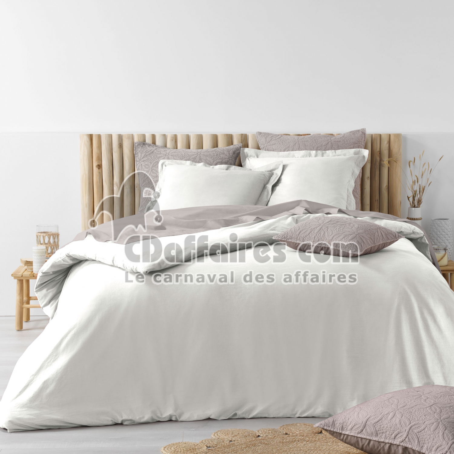 Parures de lit > Laissez-vous tenter par notre Housse de couette 2 personne 240 x 220 cm + 2 taies d'oreiller en coton lavé 57 fils Blanc. Le coton lavé est onctueusement. Taille 240 x 220 cm.