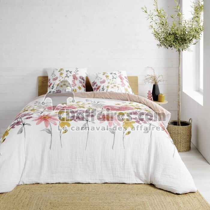 Parures de lit > la gaze de coton est une matière naturelle entièrement composée de coton.Le tissu gaze de coton est un tissu fin, léger et tout doux avec un léger effet. Taille 240 x 220 cm.