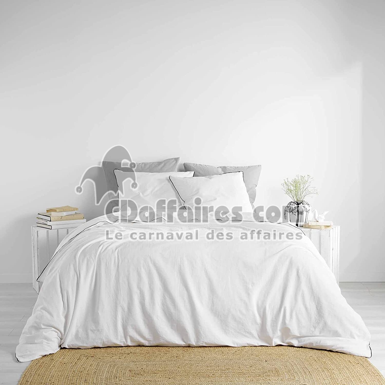 Parures de lit > Succombez à la douceur de notre parure en coton lavé à la pierre et ses 2 taies d'oreiller assorties. Son liseré noir cousu sur les bords lui confère un. Taille 260 x 240 cm.