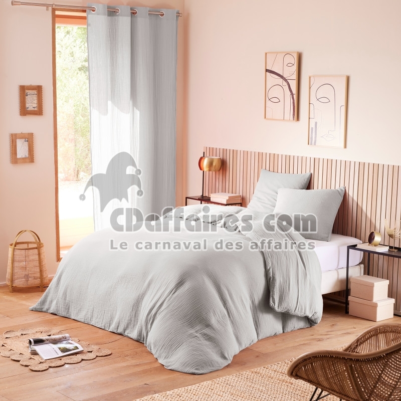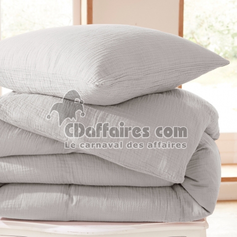 Parures de lit > Apportez une touche de sérénité et de raffinement à votre chambre avec cette parure de lit en gaze de coton gris perle. Son design élégant et sa texture. Taille 260 x 240 cm.