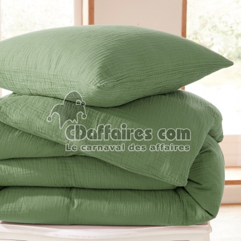 Parures de lit > Apportez une ambiance naturelle et apaisante à votre chambre avec cette parure de lit en gaze de coton vert olive. Conçue pour les grands lits, elle associe. Taille 260 x 240 cm.