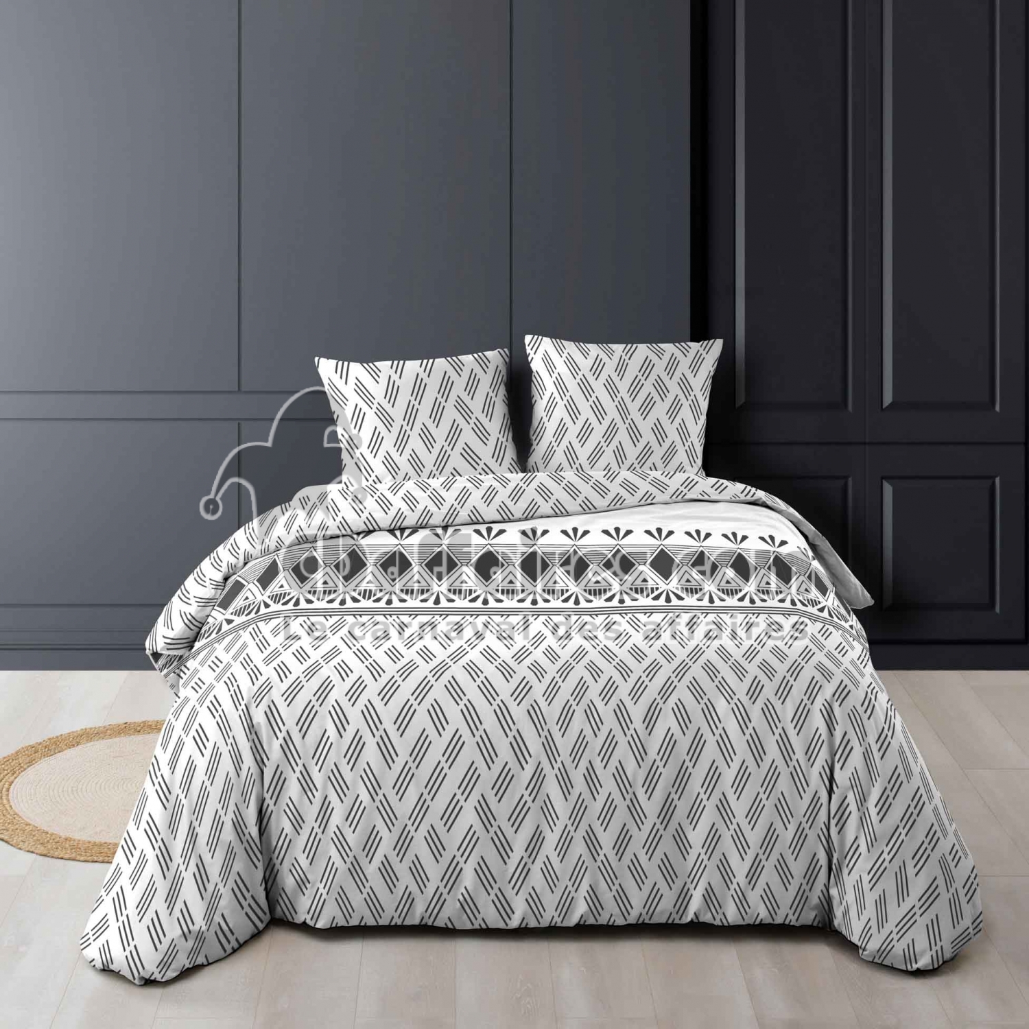 Parures de lit > Découvrez nos parures imprimées 100% coton 52 fils qui conjuguent charme intemporel et modernité. Un linge de lit doux, pratique et élégant au quotidien. Taille 260 x 240 cm.