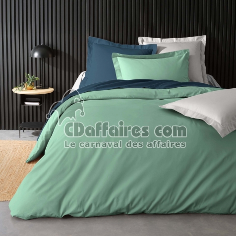 Parures de lit > Découvrez notre housse de couette en percale de coton 240 x 220 cm, idéale pour lit deux personnes, dans un coloris Tilleul apaisant. Confectionnée en