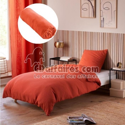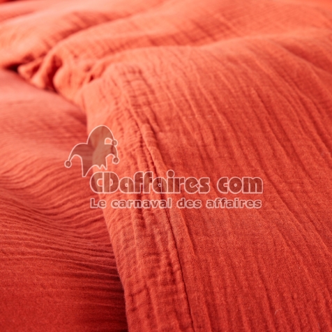 Parures de lit > Plongez dans la douceur et l’élégance naturelle de la parure Avy Terracotta. Ce pack complet en gaze de coton offre un confort aérien et un style. Taille 140 x 200 cm.
