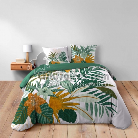Parures de lit > Apportez une touche d’évasion et de fraîcheur à votre chambre avec ce pack linge de lit FLORIDA, associant une housse de couette au motif végétal