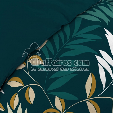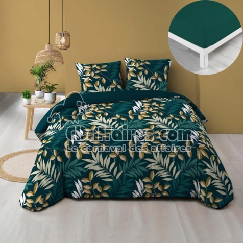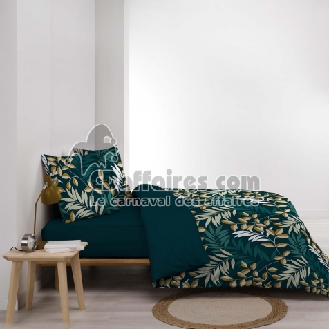 Pack housse de couette 260 x 240 cm Nelida + drap housse 160 x 200 Emeraude - CDAffaires