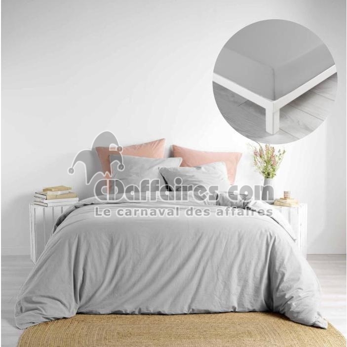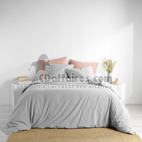 Parures de lit > Succombez à la douceur de notre pack complet parure de lit en coton lavé et ses 2 taies d'oreiller assorties + drap housse. Son liseré blanc cousu sur les