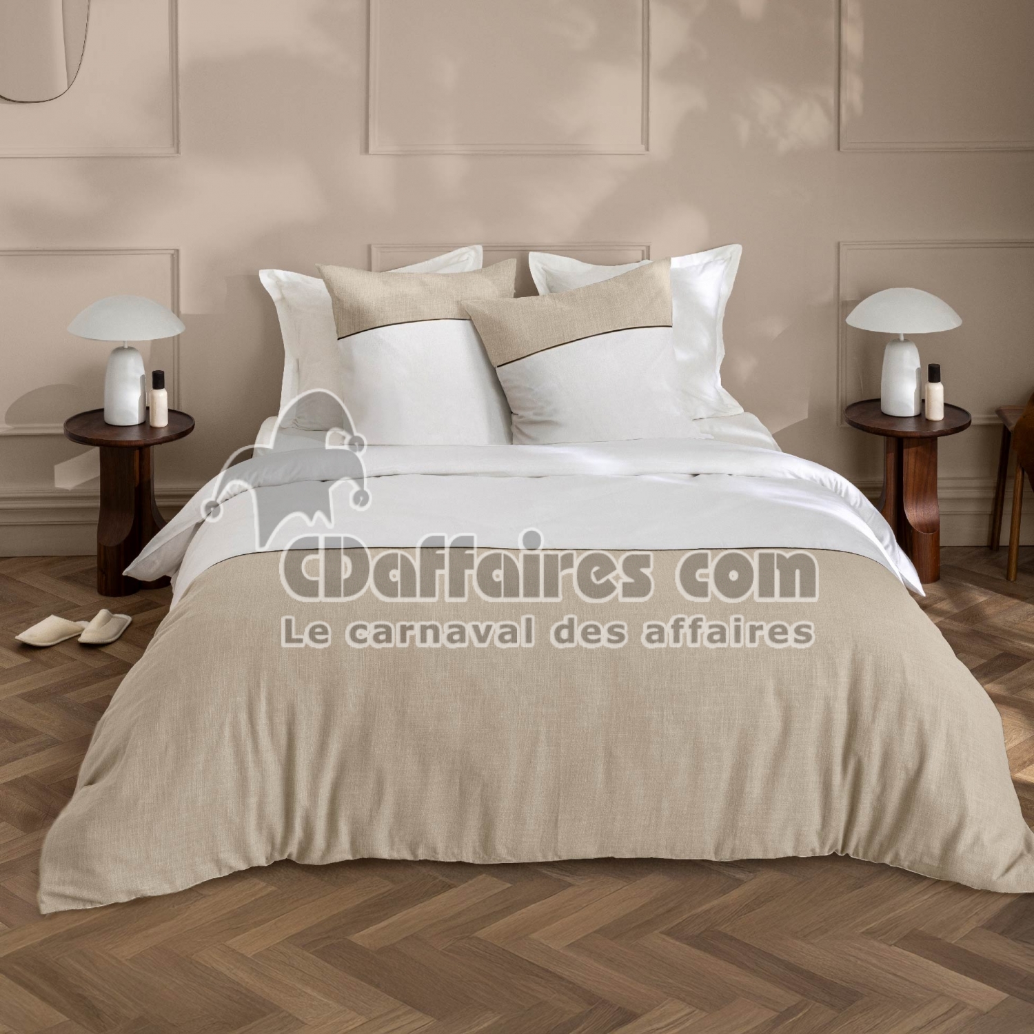 Parures de lit > Élégante et contemporaine, la parure de lit GABRIELLE associe sobriété et raffinement grâce à son jeu de matières et son design bicolore rehaussé. Taille 240 x 220 cm.
