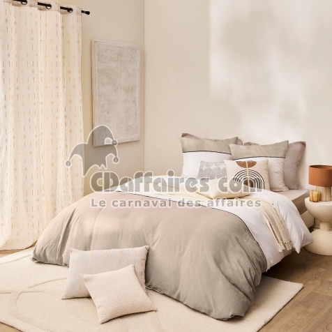 Il n'y a pas que les meubles pour décorer votre maison. Afin d'habiller vos fenêtres nous vous proposons toute une gamme de rideaux à petit prix. Pour les lève tard vous pouvez choisir parmi notre large gamme de rideau occultant, pour les frileux nous proposons toute un collection de rideaux thermiques et rideaux isolants. Pléthore de rideaux imprimés ou unis reprenant les derniers coloris à la mode sont disponible pour répondre à toutes les demandes. Pensez aussi à associer vos rideaux avec nos voilages pour personnaliser vos fenêtres au mieux de votre personnalité. Pas la peine d'attendre la fête du blanc pour acheter du linge de maison ! parfois le simple fait de changer sa housse de couette modifie la décoration de votre chambre. Afin de vous satisfaire au mieux nous vous proposons une grande quantité de housses de couette aussi bien pour des lit d'enfant, que des lit de 2 personnes ou des king size. Pensez à associer nos housses de couette avec notre collection de drap housse ou drap plat pour faire un joli coordonné. Nous proposons aussi des boutis de plusieurs coloris pour habiller votre lit avec goût et élégance.Du salon à la salle de bain en passant par la chambre des enfants, la mode s'installe chez vous.