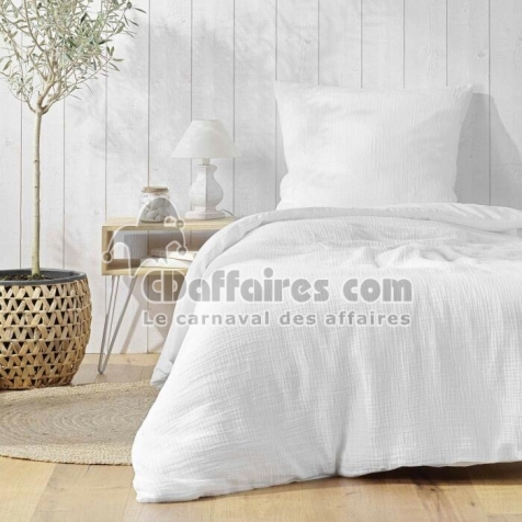 Parures de lit > Grâce à sa matière en gaze de coton, la parure de lit 1 personne Angelia Blanc vous offre un confort exceptionnel et un toucher ultra-doux, pour des nuits. Taille 140 x 200 cm.