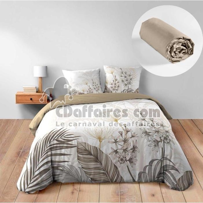 Parure de lit Bastille - Housse de couette 240x220 cm + Drap-housse beige 140x190 cm - CDAffaires