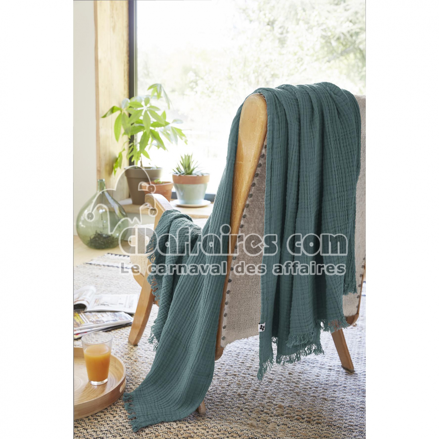 Plaids > Apportez chaleur, style et douceur à votre intérieur avec ce plaid GAÏA Bleu Canard, confectionné en double gaze de coton 220 g/m². Sa texture. Taille 130 x 160 cm.