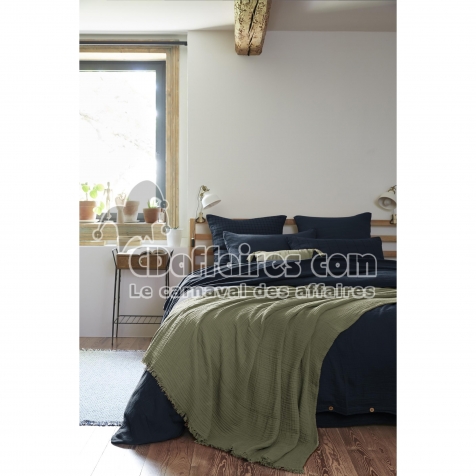 Plaids > Apportez chaleur, style et douceur à votre intérieur avec ce plaid GAÏA Romarin, confectionné en double gaze de coton 220 g/m². Sa texture légèrement. Taille 130 x 160 cm.