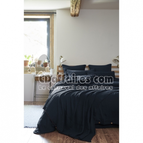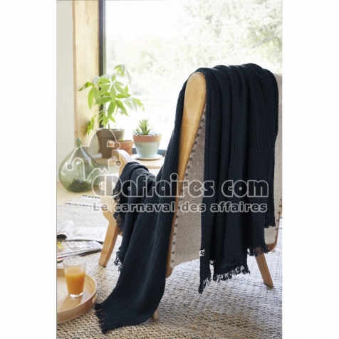 Plaids > Apportez chaleur, style et douceur à votre intérieur avec ce plaid GAÏA Bleu minuit, confectionné en double gaze de coton 220 g/m². Sa texture. Taille 130 x 160 cm.