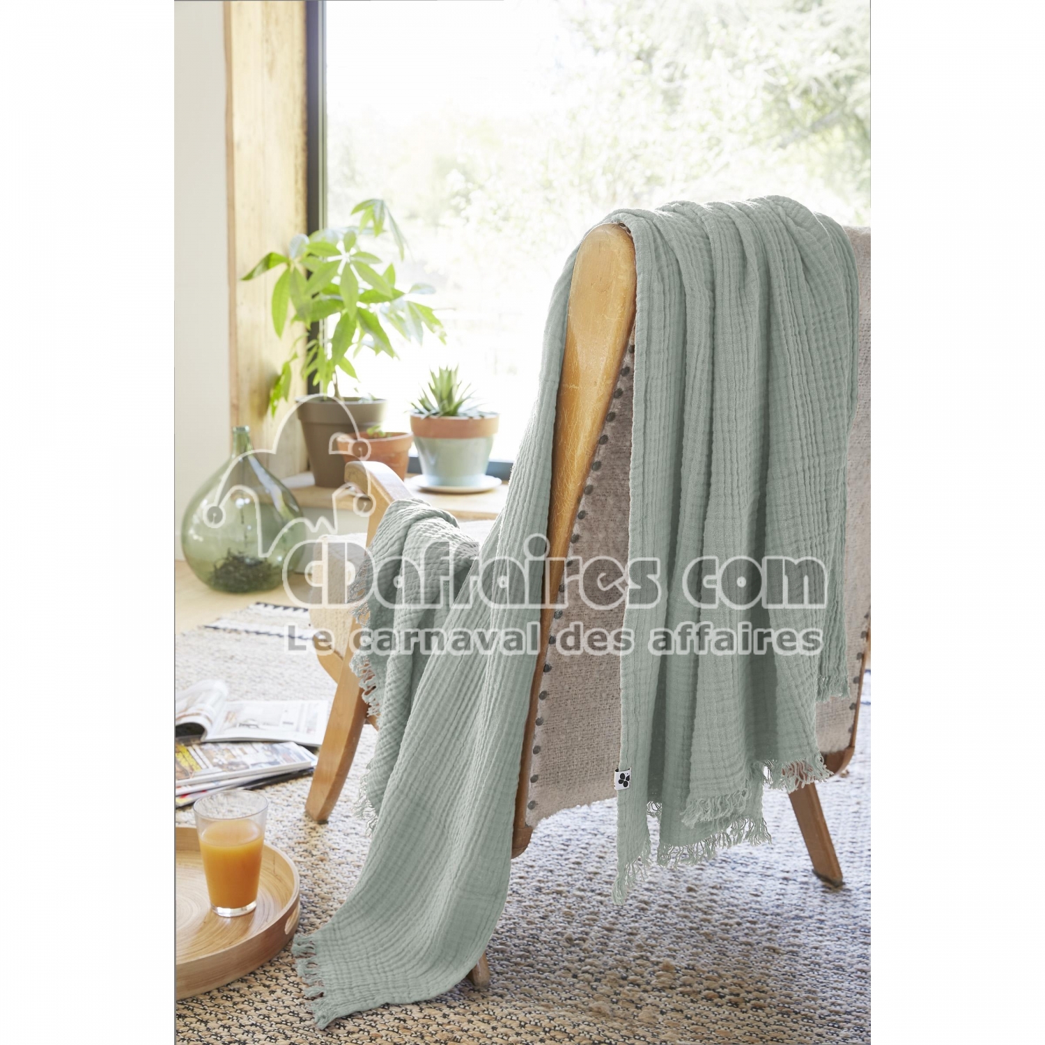 Plaids > Apportez chaleur, style et douceur à votre intérieur avec ce plaid GAÏA Eucalyptus, confectionné en double gaze de coton 220 g/m². Sa texture légèrement. Taille 130 x 160 cm.