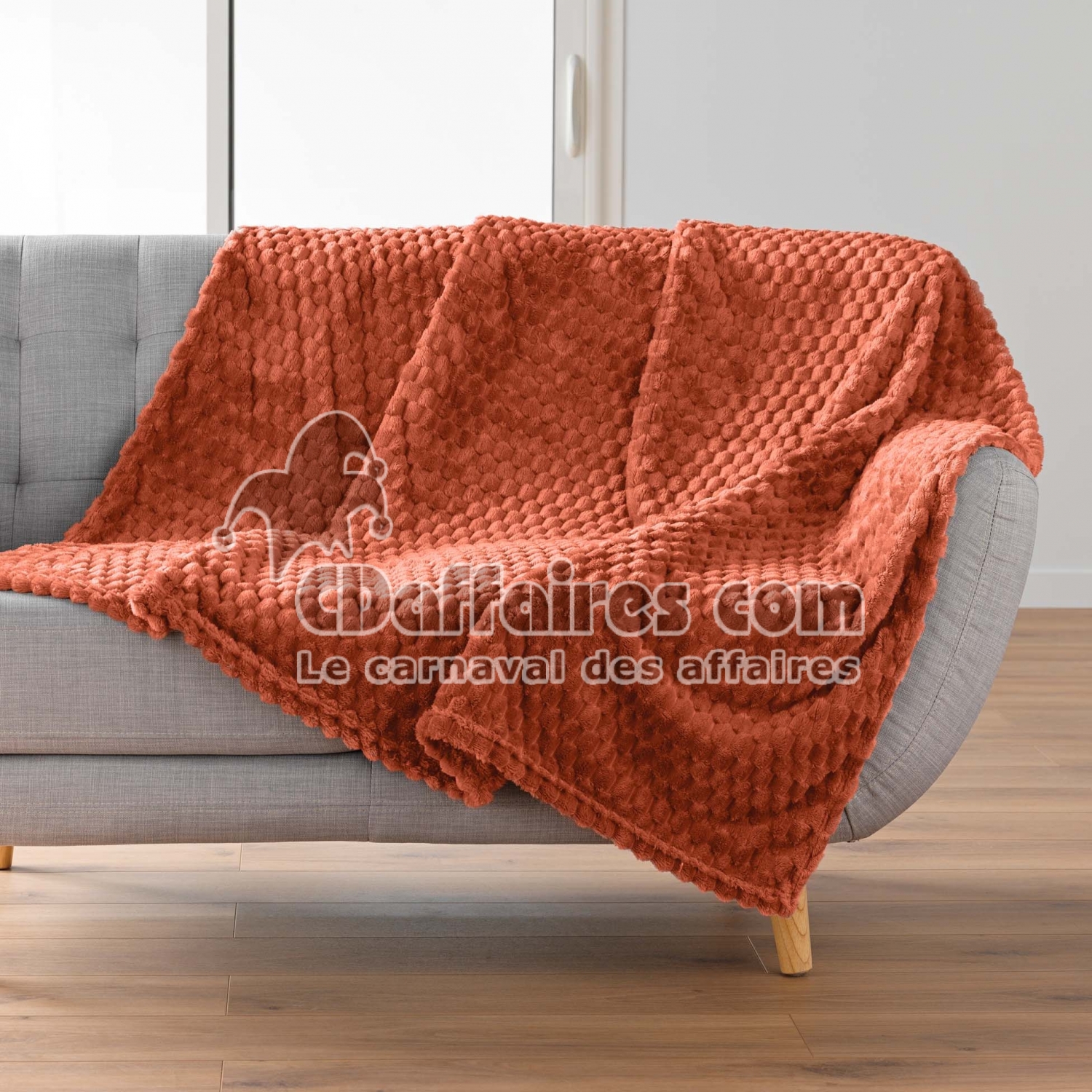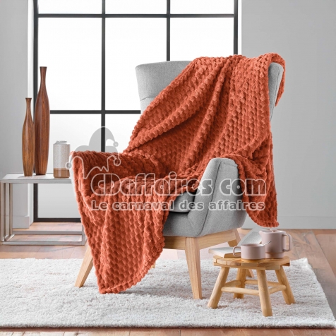 Plaids > Apportez chaleur et caractère à votre intérieur avec le plaid Mini Frosty terracotta. En flanelle douce et moelleuse, son relief en mini bulles lui donne. Taille 125 x 150 cm.