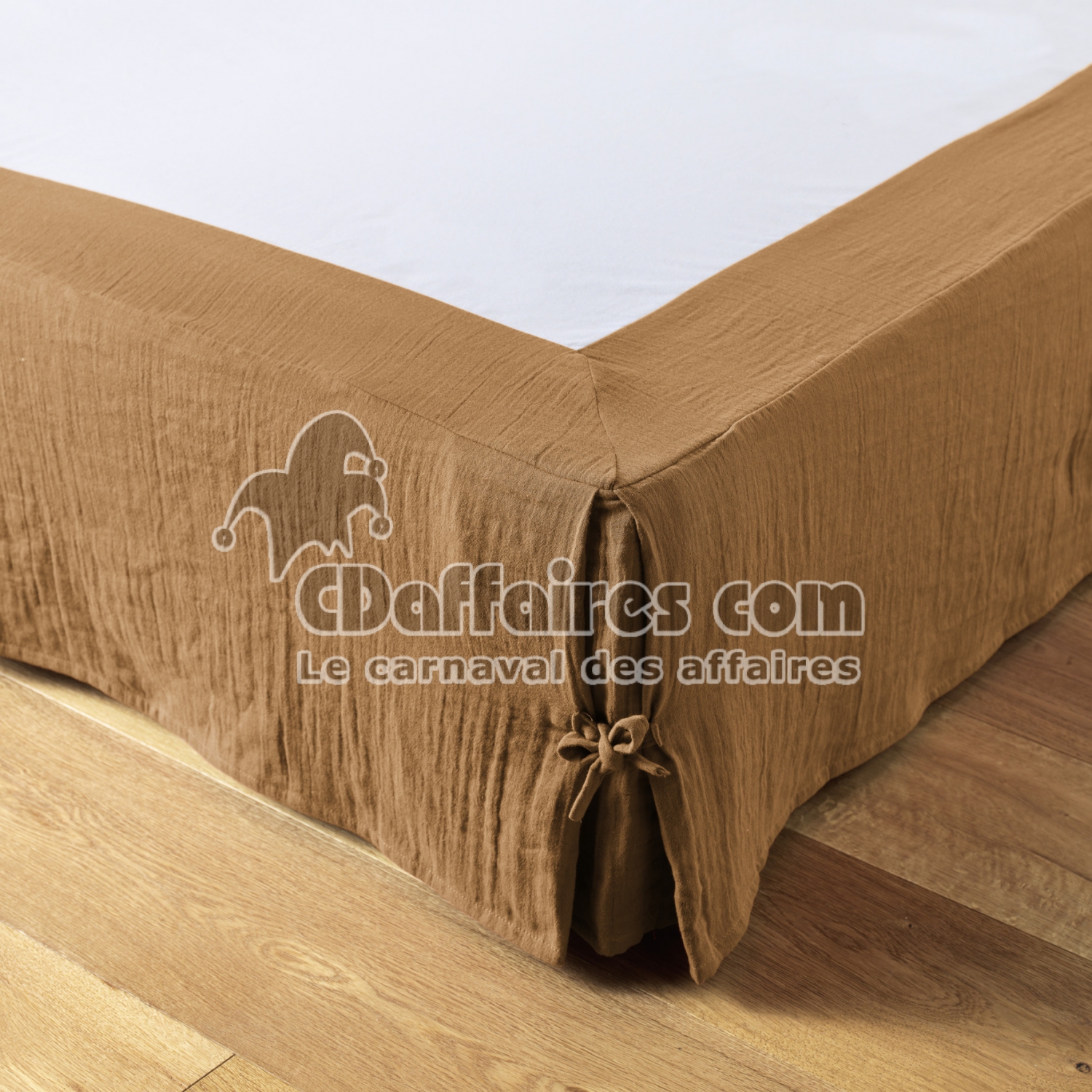 Apportez une touche chaleureuse, élégante et naturellement bohème à votre chambre avec le cache sommier Gaïa, confectionné en double gaze de coton 125 g/m².