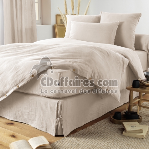 Apportez une touche chaleureuse, élégante et naturellement bohème à votre chambre avec le cache sommier Gaïa, confectionné en double gaze de coton 125 g/m².
