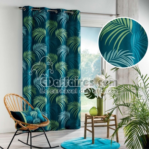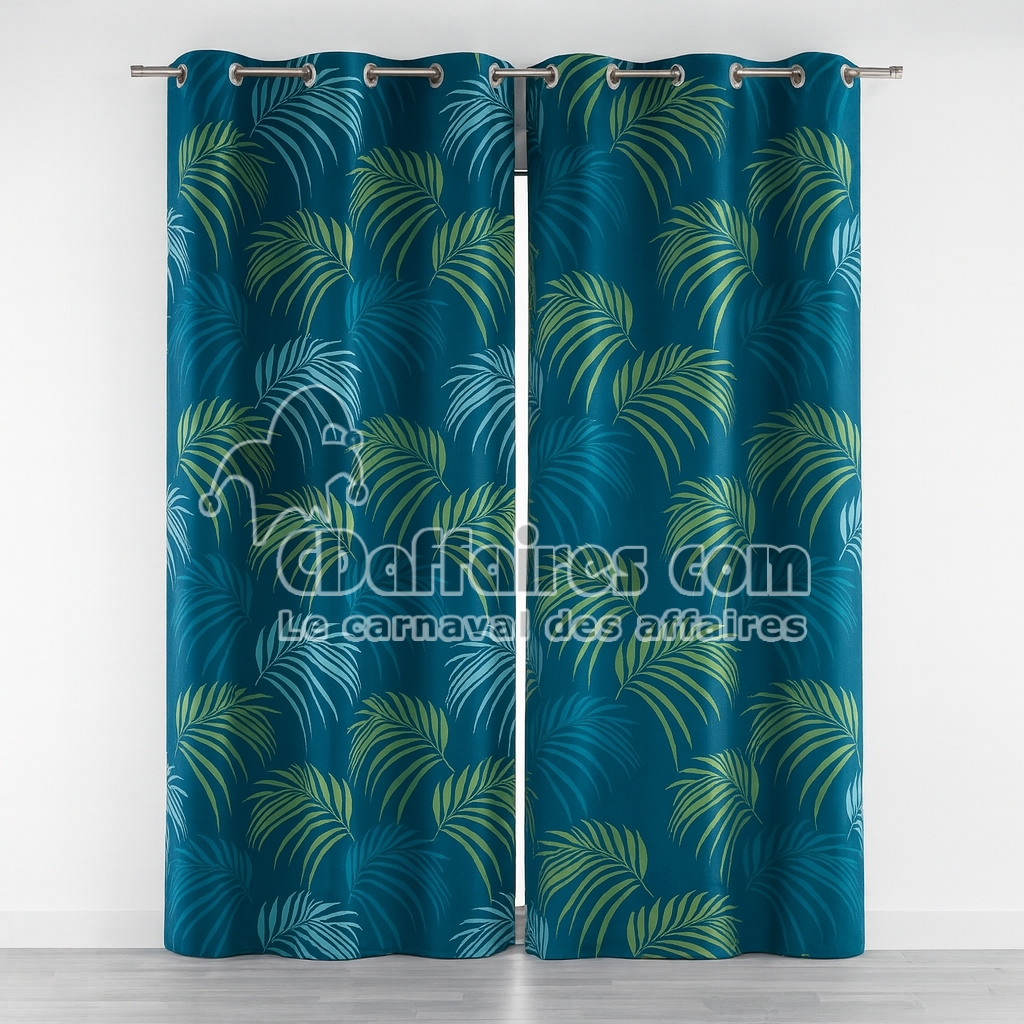 Rideaux > Apportez une touche exotique et moderne à votre décoration intérieure avec ce lot de 2 rideaux Végétal Bleu. Leur motif de feuilles tropicales aux nuances