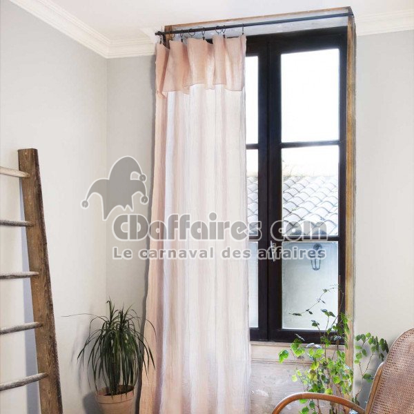 Rideau ajustable + 8 anneaux pince – Gaze de coton – 140 x 300 cm – Rose – Gaïa - CDAffaires