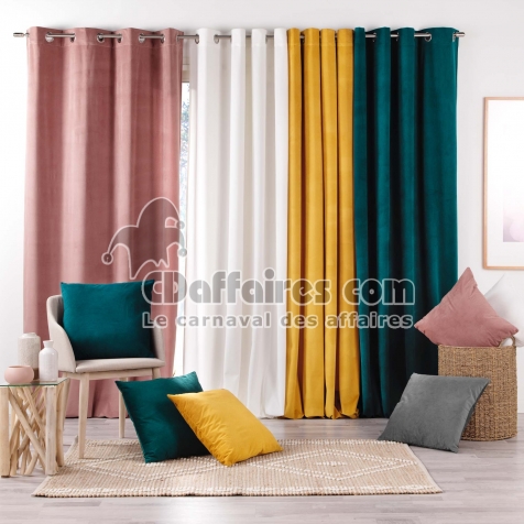 Rideau tamisant à œillets 140 x 260 cm – Velours relief Velouriane Jaune Ocre - CDAffaires