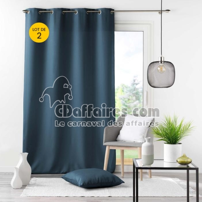 Lot de 2 Rideaux à Œillets Métal 140 x 260 cm – Uni Marine – Essentiel - CDAffaires