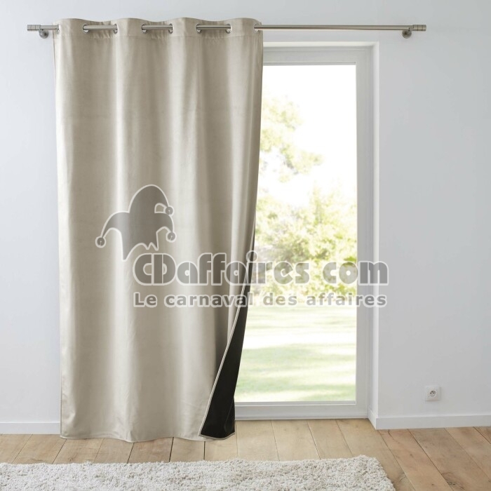 Rideau Isolant Thermique à Œillets 140 x 260 cm – Velours Relief – Polarchic Sable - CDAffaires