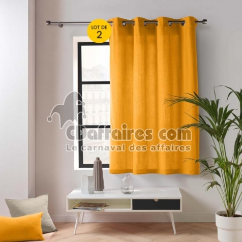 Lot de 2 Rideaux Petite Hauteur 135 x 180 cm – Twily Jaune – Polycoton - CDAffaires