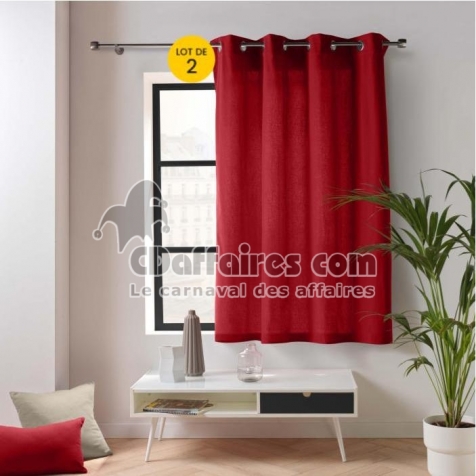 Lot de 2 Rideaux Petite Hauteur 135 x 180 cm – Twily Rouge – Polycoton - CDAffaires
