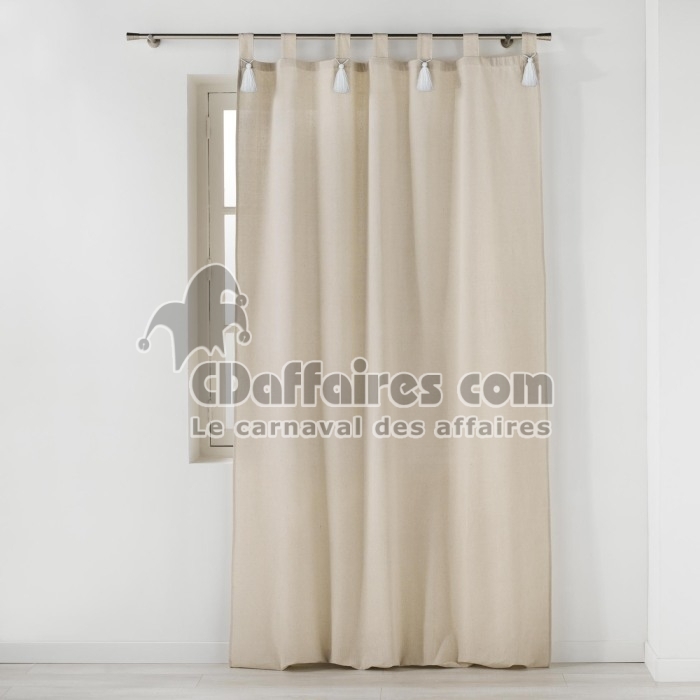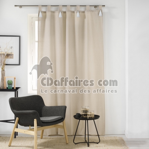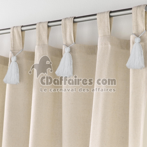 Rideaux > Craquez pour le charme bohème et raffiné du rideau Cyrine Naturel orné de pompons blancs. Confectionné dans un tissu polycoton à la texture douce et au. Taille 140 x 240 cm.