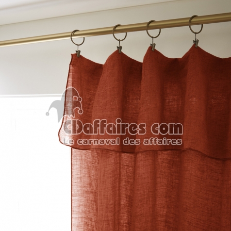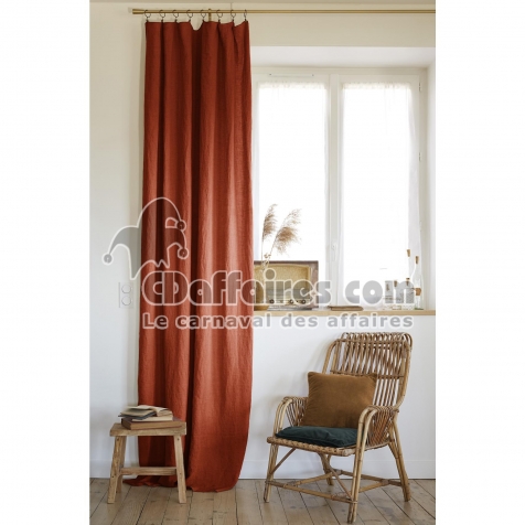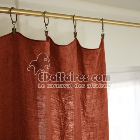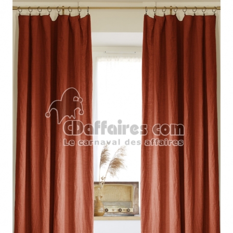 Lot de 2 rideaux ajustables en lin lavé avec 8 anneaux pince 140 x 270 cm Paprika - CDAffaires