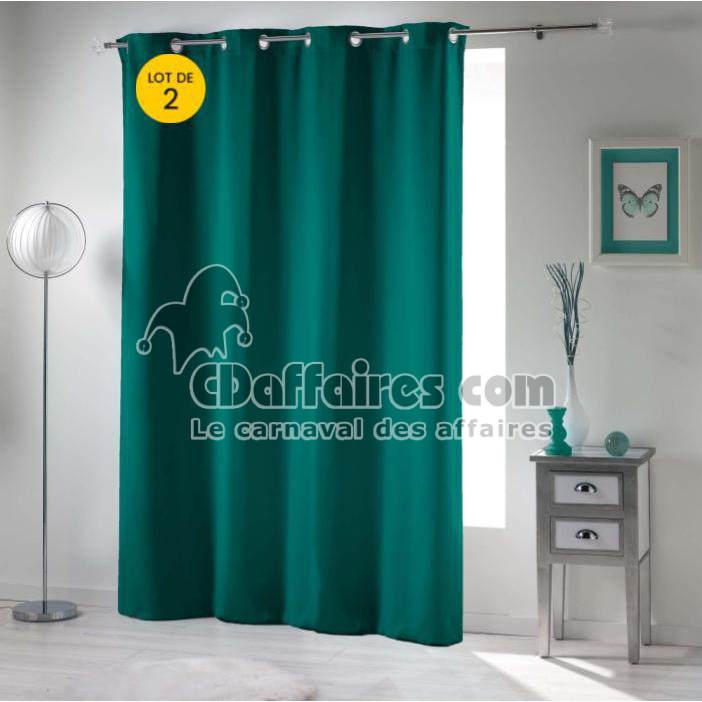 Rideaux > Joignez l'utile à l'agréable avec notre lot de 2 rideaux 100% occultant 135 x 240 cm uni Emeraude. Taille : 135(L) x 240 (H) cm Attache: Œillets en métal